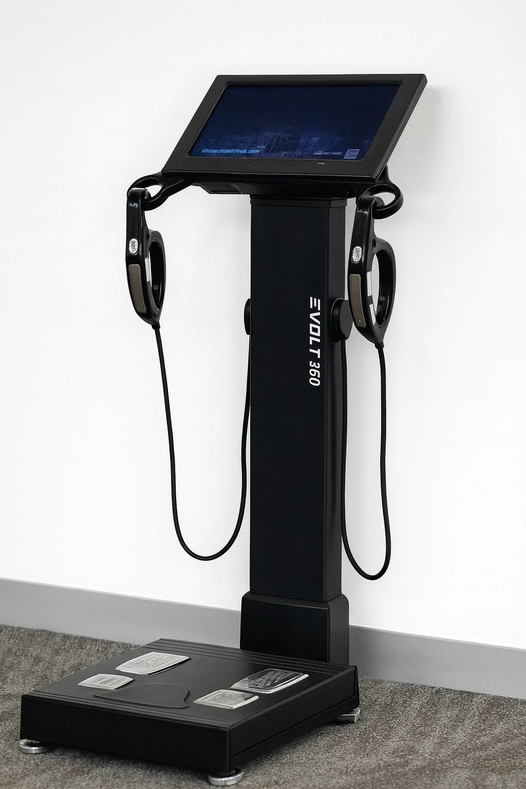 Unlike a simple weight or BMI test, the Evolt 360 uses bioelectrical impedance technology (BIA) to provide a detailed breakdown of your body composition in under a minute.